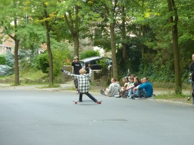 Toen het een beetje begon te druppelen is er een slidesessie ontstaan. Op een steile heuvel met lekker asfalt werden dikke standup slides gedaan, stylische handopdegrond slides en flink wat funstuff. Alhoewel de druppels snel plaats maakten voor een zonnetje, zijn we hier lang gebleven.